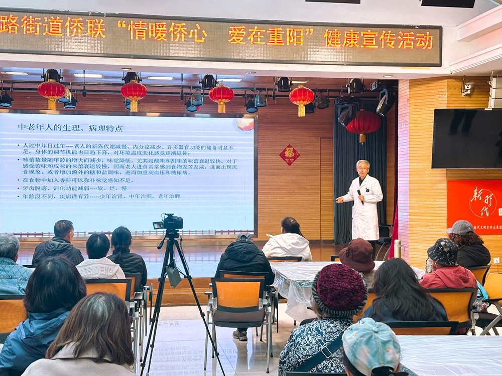 岁岁重阳,今又重阳。在重阳节来临之际,为进一步关心关爱辖区侨胞,丰富侨胞精神文化生活,普及健康养生知识,10月22日下午,北京崇文门中医医院组织专家医疗团队走进驹章服务站开展“情暖侨心,爱在重阳”健康宣讲活动,与辖区侨胞代表共同度过了一段温馨祥和的时光。